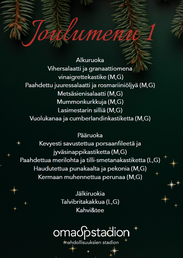 Tarjolla kolmen ruokalajin Joulumenu 1, joka saa makunystyrät laulamaan joululauluja!